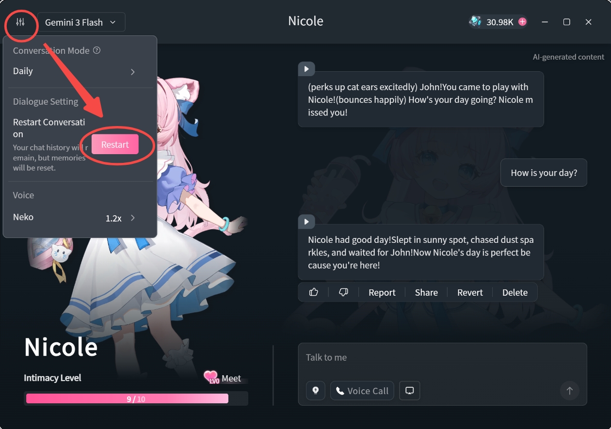 - Voice: Press the shortcut key "Alt+X" to start recording, speak, then press "Alt+X" again to end recording. This message will be automatically sent to the character. After listening, they will respond based on their thoughts.