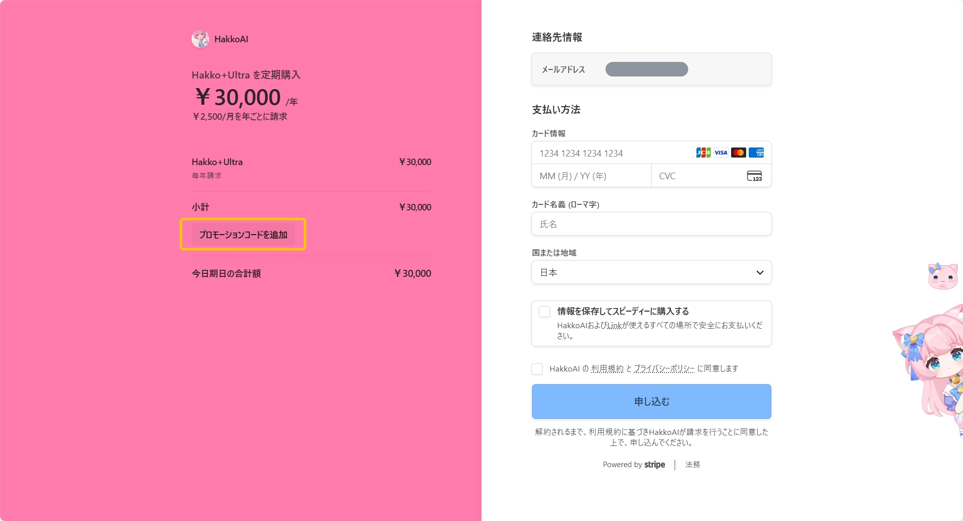 HakkoAIからのクーポンは見つかりましたか? ついに、PC版のStripe決済画面でクーポンコードが利用可能になりました!